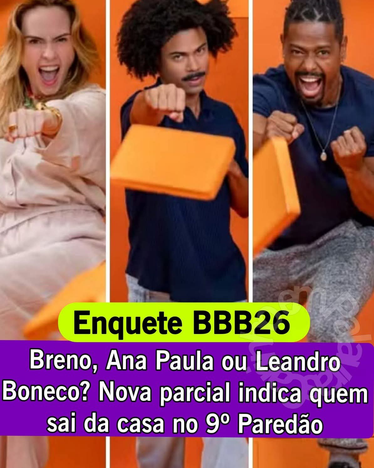 Enquete BBB26; Breno, Ana Paula ou Leandro Boneco? Parcial indica possível eliminado do 9º Paredão