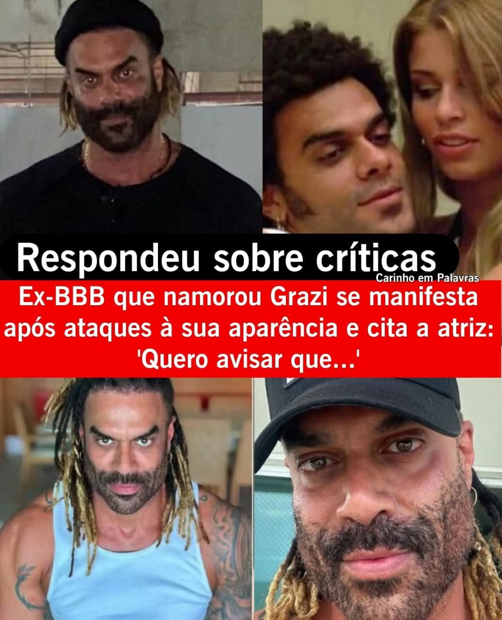Ex-BBB que namorou Grazi Massafera se manifesta após ataques à aparência e cita a atriz nas redes sociais